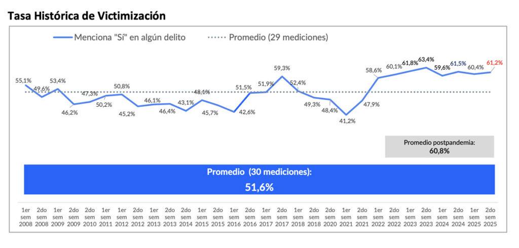 La tasa de victimización de la ciudad alcanzó un 60,7% en el segundo semestre de 2025, con un alza significativa frente a la medición anterior (50,8%).